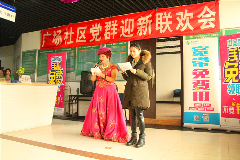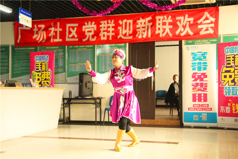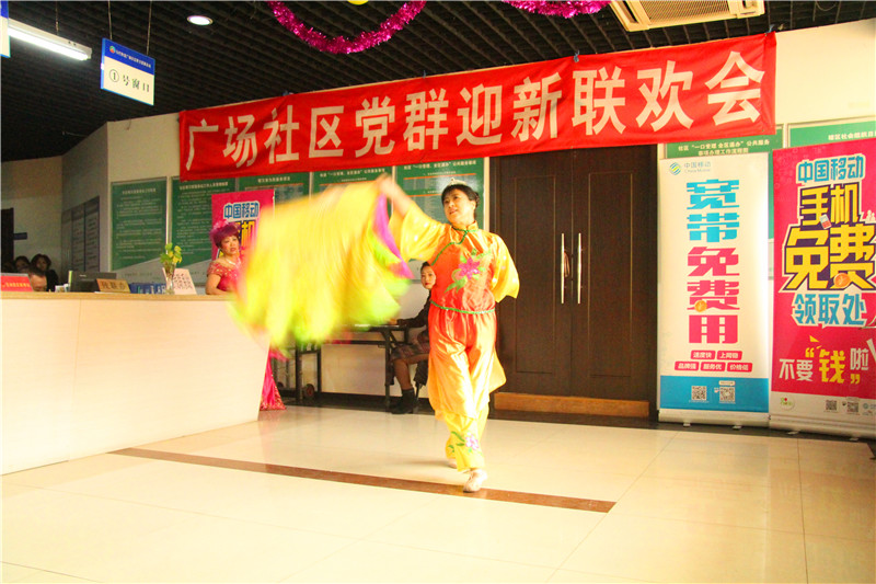 2016年12月20日,大连市沙河口区马栏街道广场社区的党员与居民群众欢聚一堂,载歌载舞,以丰富精彩的文艺节目辞旧迎新,共建和谐。整台节目由广场社区秋枫艺术团组织演出,一曲开场舞《火火的中国》烘出全场气氛,大合唱《四渡赤水出奇兵》、《共圆中国梦》铿锵澎湃,舞蹈《梦里水乡》、《化蝶》柔美婉约......在和谐欢乐的气氛中,大家相互祝福在新的一年里实现新跨越,再创新辉煌。