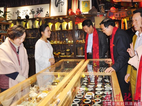 在店内,非遗文化“妙品沉香”传承人韦婵娟女士向大家展示了香文化的才艺,并详细的向来保军先生就沉香文化的源远流长,经营发展等情况作了汇报。 香道,是一种具有古老悠久历史的雅道礼仪,是独居东方特色的传统艺术,回顾几千年的中华文明,焚香已成为古代上流社会必不可少的雅事……“妙品沉香”系中国收藏家协会会员,重庆市'珠宝协会副会长单位。由于常年坚持到世界各地的沉香原产地收购野生沉香原材,并以“诚信经营、品质至上”为座右铭,深受广大香友信赖,成为中国各大高端企业和会所的沉香礼品提供商、2015联合国中华文化交流大会指定专用香礼……“妙品沉香”十年来坚持经营天然野生沉香,并致力于慈善事业和公益传播,为发扬中国传统雅文化孜孜不倦……其精神实属难能可贵! 古人云:今生闻得奇楠香、三世修的善姻缘。人们喜欢沉香,因其数量极少,香味奇特,还是自然界中极少且具有抗菌及增强免疫功能的药材,其变化无穷,用心去品香中韵味,可以达到精神提升与净化。