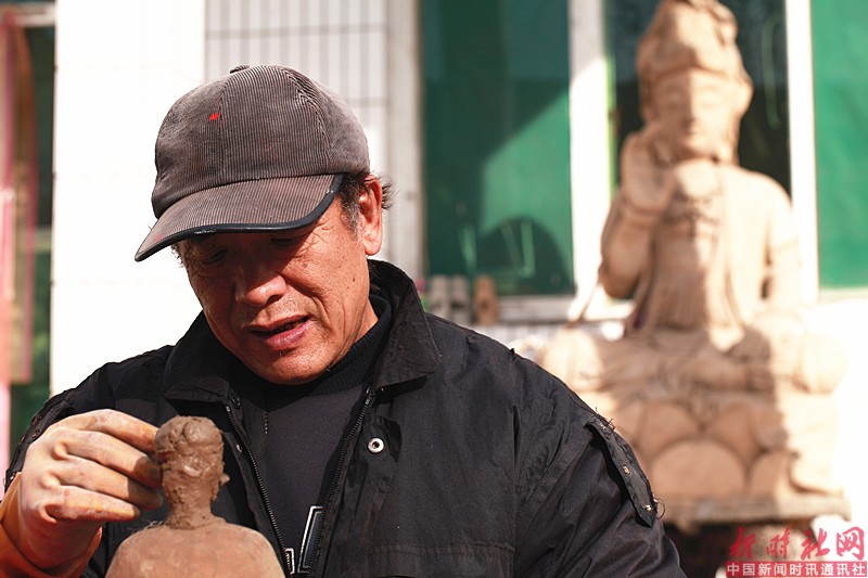 南常村村民秦京祥从小爱好绘画,木刻雕塑并学传统泥塑工艺,由于他刻苦钻研,勤奋好学,废寝忘食,搜集资料、投师访名,探讨中国工艺的精华,往往不分昼夜几乎跑遍了全国各大古剎庙宇。由此他在泥塑人物的艺术造诣上取得了极多突出的可喜成果,他并不满足现状,夜以继日地向更高层探索和发挥防水技能并有施工短,凝固快,开裂少,缝隙小,更坚硬,不怕水。他把各地庙宇的不同神态,都能以取长补短,创新进取,并对传统泥塑创出了一整套的独特情调具有超然脱俗之风和优雅飘逸的灵动之感,使观光者拍手叫绝。在此期间又用声,光,电技术及高科技那容一体,在他的泥塑中活动自如是极罕见的,尤其泥塑人物造型更是活灵活现。