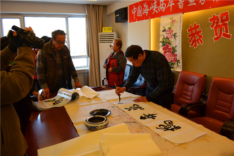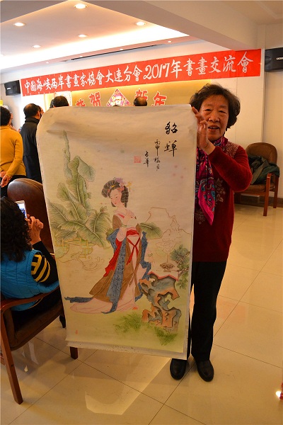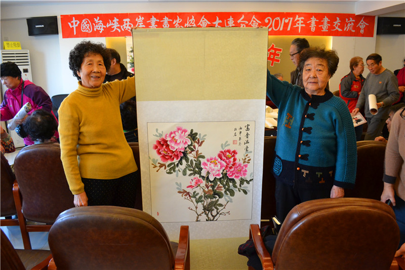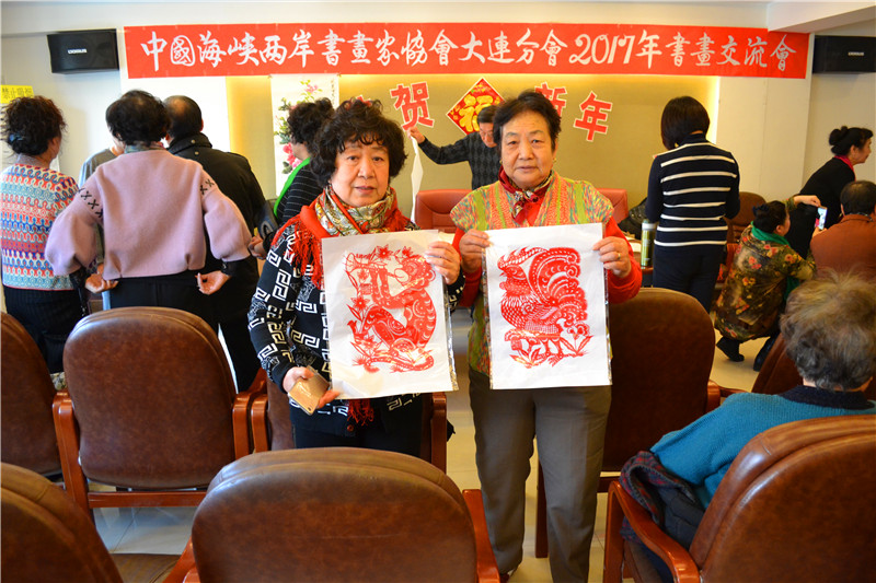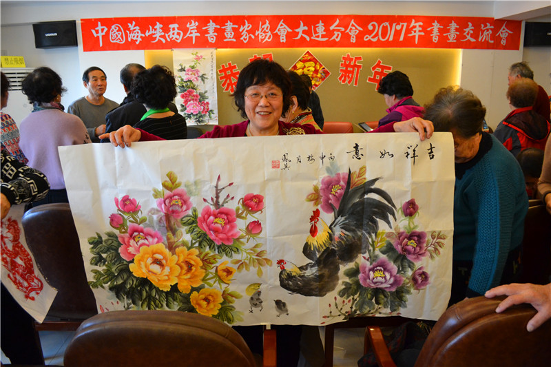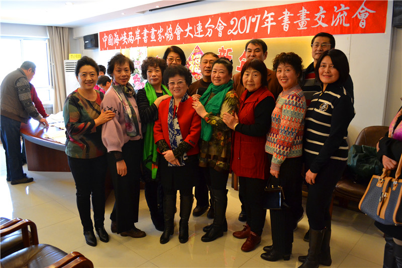 2017年元月3日上午,「中国海峡两岸书画家协会大连分会」在大连市甘井子区,举办了“恭贺新年2017年书画交流会”。大连分会的会员书画家们以及十余名新入会的会员,共近60余人齐聚一堂,交流书画艺术,并且现场大显身手,挥毫创作,包括传统剪纸、布艺画等近百幅艺术作品都表现出了各自的风格。