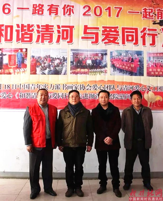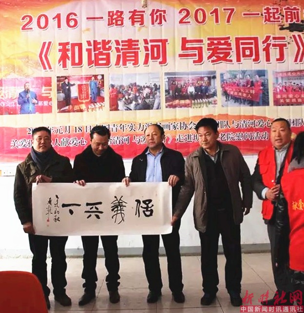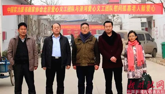 2017年1月18日,雾霾的能见度大约几十米左右,中国青年实力派书画家协会执行会长吴延波先生、秘书长陈寿乾先生、财务总监毛艳女士、中央美院的年轻女画家、中国青年实力派书画家协会会员杨景文老师一同带着很多同道的关爱和愿望,踏上了水浒英雄武松的故乡,驱车前往河北清河坝营孤老院。