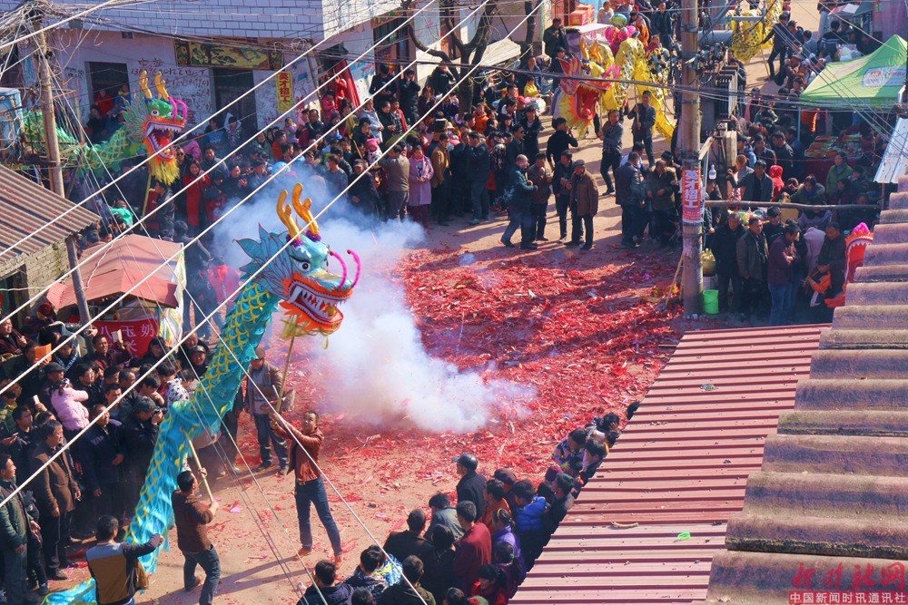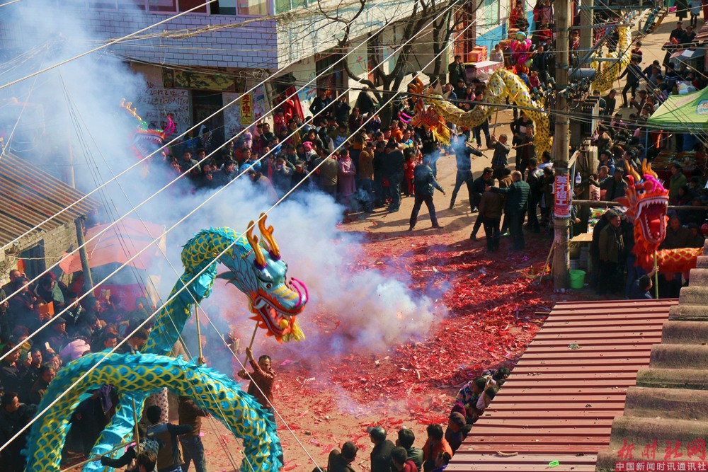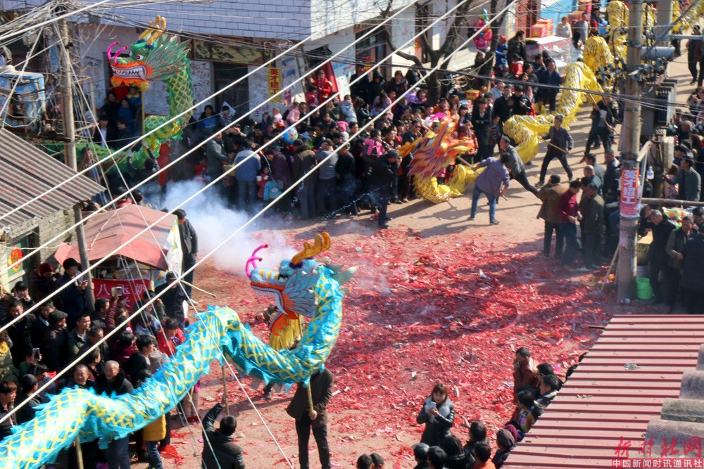 按照习俗,每年正月十二日至正月十五日在村镇上举办“龙灯会”,表演形式以舞龙为主题。特别是晚上,以燃放大量的鞭炮来渲染气氛,因不停的放炮,炮纸堆积起来很厚,自燃起来,窜起熊熊火苗,四条龙围着火堆表演,惊险壮观(有舞火龙之说)。连续几日,通宵达旦,轮番演出,热闹非凡,引得十里八乡地乡亲们扶老携幼前来赶会,高潮时观众多达数万人。