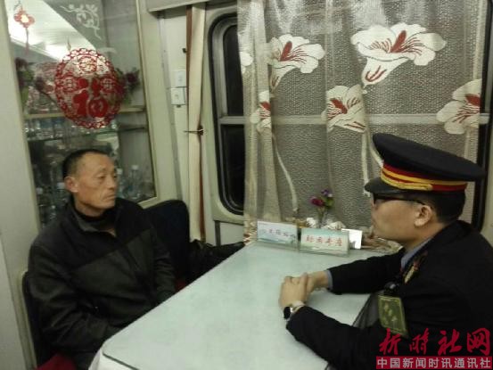 据他旁边的旅客反映,自北京开车这一晚上。就见他总是翻看自己的手提包,大家都觉得他有些奇怪。听到这些,阴车长赶忙将该旅客请到了餐车的“心灵驿站”席位,并与其聊起了家常。慢慢的知道了他在北京打工的不容易,知道了这2100元对于他的重要性!一位年近古稀之年的老人,还在外打工,正是因为钱挣得不容易!怕丢怕的自己出现了幻觉。阴车长为老人端来了热茶,缓解了老人的紧张情绪,耐心告诉老人,长途乘车不要携带大额现金,有困难要第一时间与列车工作人员取得联系,我们会及时热情地帮助和解决。温暖贴心的关怀抚慰了老人,紧张不安的心情平静了,阴车长的心理疏导让他感到了列车这个大家庭的温暖。