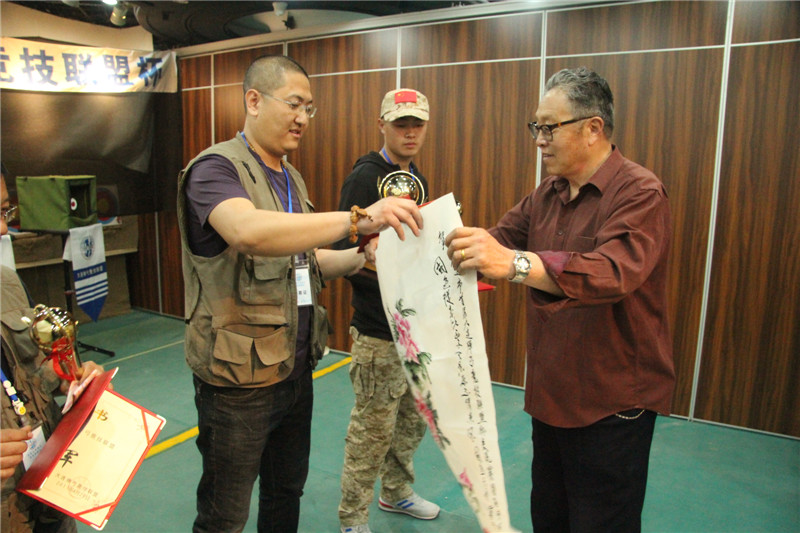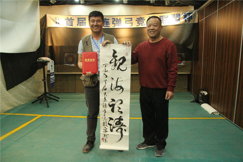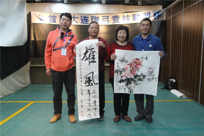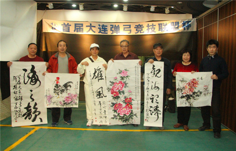此次弹弓竞技交流赛,主要是为了给弓友们提供一个竞技交流的平台,同时弘扬非物质文化遗产,传承中华民俗文化。现在许多人对弹弓这一活动存在很大的误解,通过这次交流赛,正确引导弹弓民间竞技运动的发展,提高弓友们对民俗文化的认识和竞技水平。「中国海峡两岸书画家协会大连分会」会长 孙乐廷 先生、副会长 何涛 先生、秘书长 王晓江 先生、常务理事 张华茂 先生、理事 付书坤 先生 李军 先生 王玉敏 女士,作为本次交流赛赞助单位的代表,出席了赛场。几位书画家现场挥毫泼墨,为交流赛助兴,引起了弓友们对传统书画艺术浓厚的兴趣,受到了大家的好评和欢迎。交流赛评出了冠军、亚军和季军等数名弓友。在颁奖仪式中,孙乐廷 会长代表「中国海峡两岸书画家协会大连分会」对「首届大连弹弓竞技联盟杯交流赛」的成功举办表示祝贺。书画家们现场创作的书画艺术作品,作为奖品,颁发给了获奖弓友。「首届大连弹弓竞技联盟杯交流赛」组委会的代表 穆飞好 先生代表组委会对「中国海峡两岸书画家协会大连分会」的书画家们表示真诚的感谢。