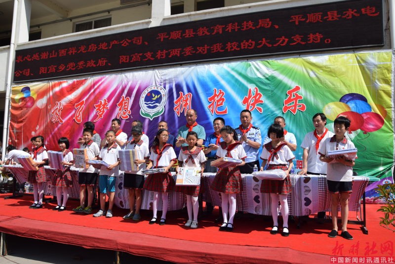 平顺县阳高乡中心校为了热烈欢庆一年一度的“六一国际儿童节”,校方特邀平顺县科教局局长马玉和同志、科教局主任贾正罡同志、山西祥龙房地产开发有限公司总经理李庆红同志、平顺县水电集团公司总经理段明亮同志、阳高乡党委书记桑红亮同志、阳高村村民委员会主任田勇同志、平顺县公安局阳高派出所所长石磊同志,以及有关单位的领导同志参加了这场“放飞梦想 拥抱快乐”庆祝六一国际儿童节活动。