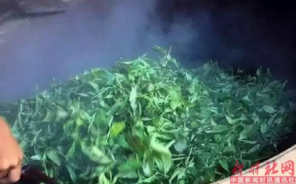 黑茶原料比较粗老, 为了避免水分不足杀不匀透,一般除雨水叶、露水叶和幼嫩芽叶外,都要按10∶1的比例洒水,即10千克鲜叶1千克清水,以便于杀青能杀匀杀透。