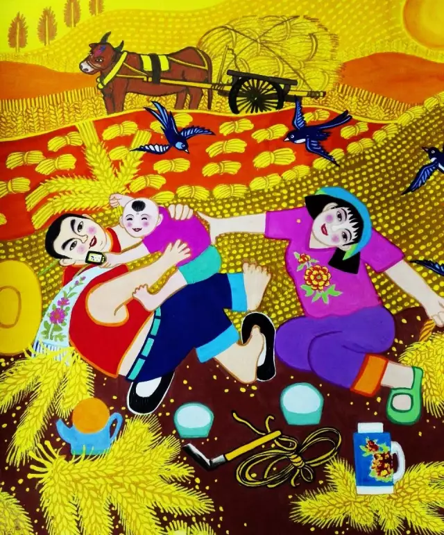 特约记者趙志丹报道:农民画是通俗画的一种,多系农民自己制作和自我欣赏的绘画,风格奇特,手法夸张、有东方毕加索之美誉;其范围包括农民自印的纸马、门画、神像以及在炕头、灶头、房屋山墙和檐角绘制的吉祥图案。