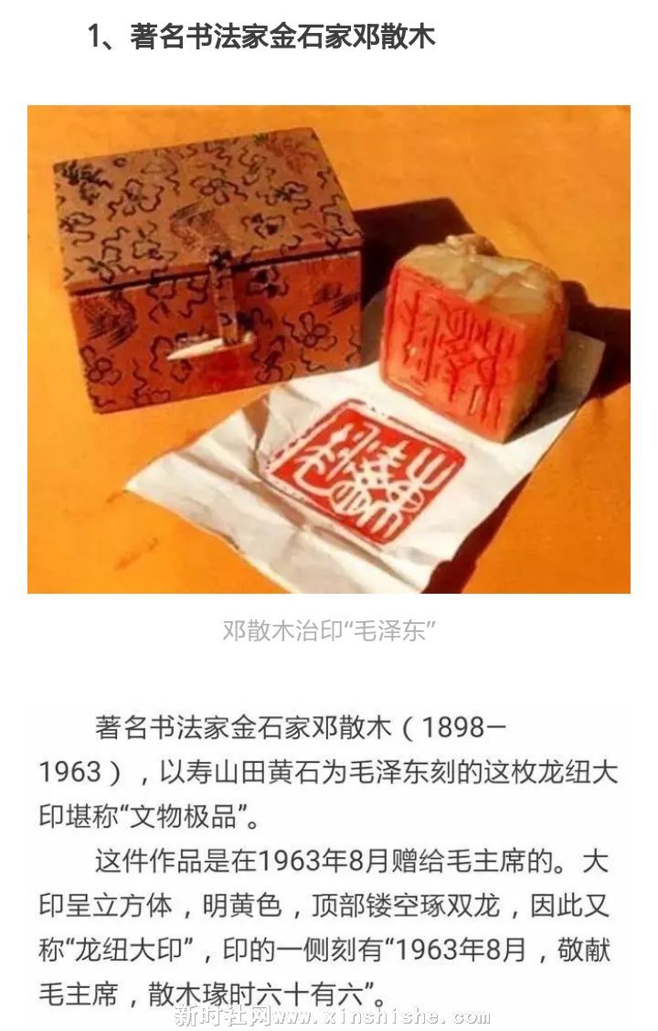 著名书法家金石家邓散木[1898—1963],以寿山田黄石为毛泽东刻的这枚龙纽大印堪称“文物极品”。