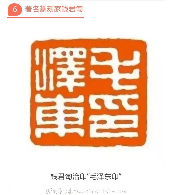在上海解放不久,当代著名篆刻家钱君匋1906--1998)怀着崇敬之情给毛泽东篆刻了 一方“毛泽东印”。并通过当时的文化部长沈雁冰(茅盾)转赠给毛泽东。