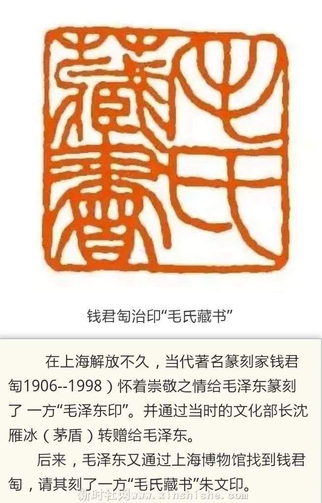 后来,毛泽东又通过上海博物馆找到钱君匋,请其刻了一方“毛氏藏书”朱文印。