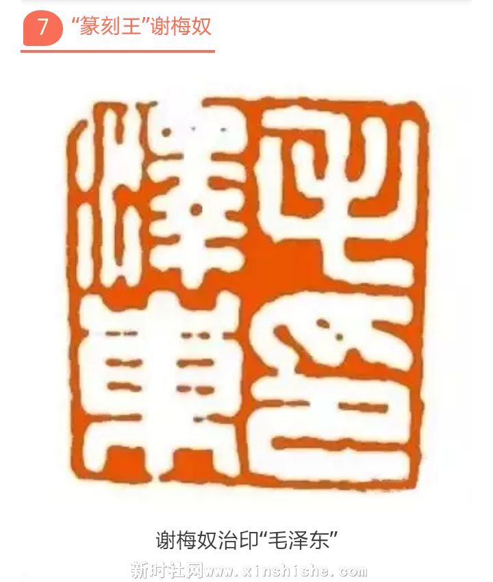 据了解,谢梅奴在1948年还将毛泽东《沁园春·雪》的内容刻在印章上,整套印章共30多方,这是当时问世的第一组毛泽东诗词篆刻作品。解放后,此套印章由湖南省人民政府送给了毛主席。此套印章现收藏在中国革命历史博物馆。