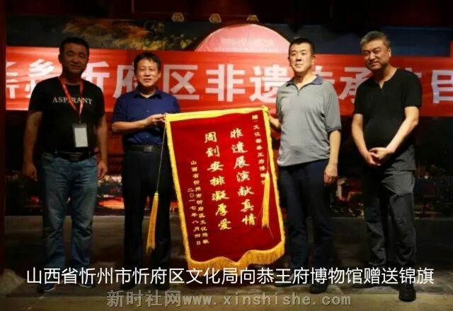 此次展演活动是“欣欣向荣 心灵之舟——山西忻州文化遗产精品展示月”系列活动之一,两天共计演出二十余场,吸引众多游客驻足欣赏。演出最后一天,山西省忻州市忻府区文化局对恭王府博物馆的大力支持表示感谢,并赠送恭王府博物馆锦旗:非遗展演献真情,周到安排凝厚爱。
