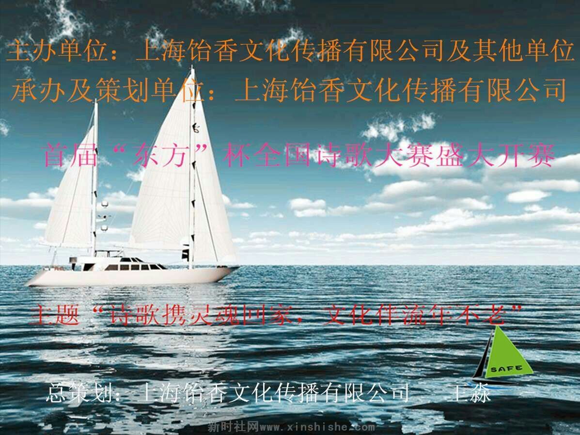 日前,在上海正式启动“中国现代诗歌百年华诞暨首届‘东方’杯全国诗歌大赛”全国性、大型公益活动。此次公益活动由“上海饴香文化传播有限公司及其他单位”共同主办,“上海饴香文化传播有限公司”承办与策划,“上海帅珍科技”提供技术支持。