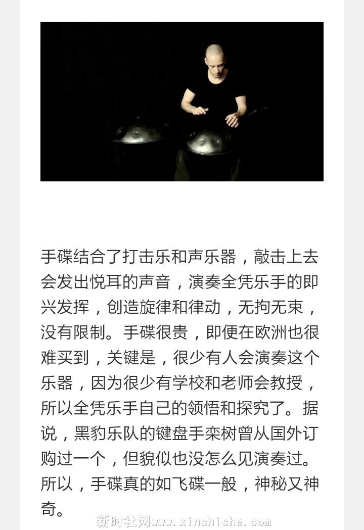 手碟结合了打击乐和声乐器,敲击上去会发出悦耳的声音,演奏全凭乐手的即兴发挥,创造旋律和律动,无拘无束,没有限制。手碟很贵,即便在欧洲也很难买到,关键是,很少有人会演奏这个乐器,因为很少有学校和老师会教授,所以全凭乐手自己的领悟和探究了。据说,黑豹乐队的键盘手栾树曾从国外订购过一个,但貌似也没怎么见演奏过。所以,手碟真的如飞碟一般,神秘又神奇。