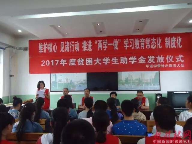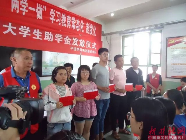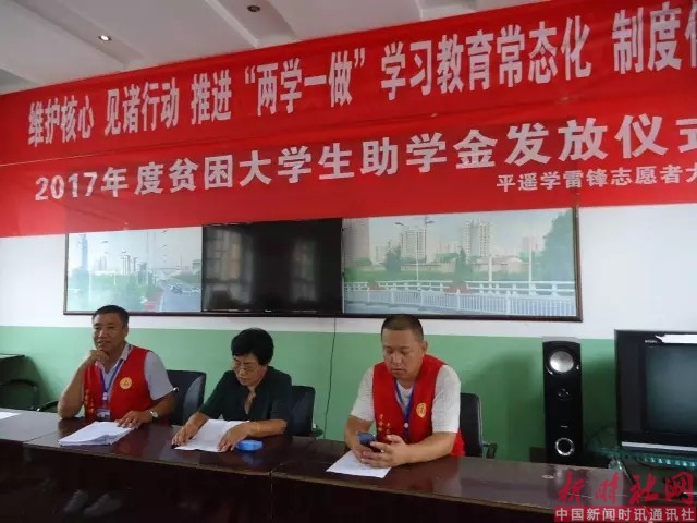 2017年8月22日平遥学雷锋志愿者大队与慈善总会在南城大队为贫困大学生发放了助学金,2017年爱心一帮一有6名,义卖字画受资助的有3名,2017年义卖字画资金承接2016年被资助的大学生6名。平遥学雷锋志愿者大队受爱心人士委托,对2016年爱心一帮一资助的大学生今年又给发放了助学金。