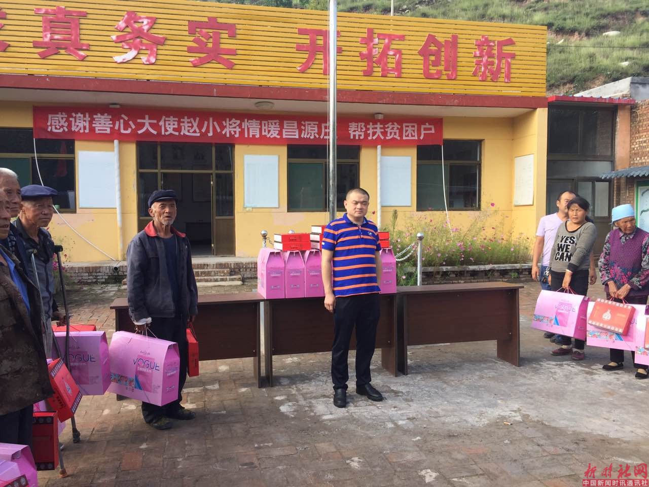 山西站站长杨文阁报道:2017年8月30日,几场秋雨过后,太阳终于露出久违的笑脸。北京西商国际心理医学研究院太原院长、山西圣安缘心理咨询有限公司执行董事、全国青少年社会工作联合平台“青春心声”服务站负责人、平遥县青少年事务社工协会会长赵小将驱车几十公里,来到平遥县孟山乡昌源庄村,向该村21家农户捐献礼盒餐具一套和精品蚕丝被一张。