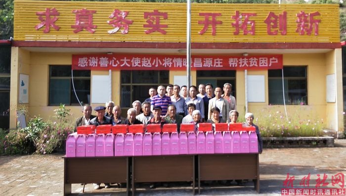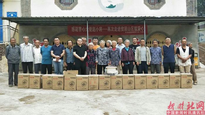 8月30日,几场秋雨过后,太阳终于露出久违的笑脸。赵小将驱车几十公里,来到平遥县孟山乡昌源庄村,向该村21家农户捐献礼盒餐具一套和精品蚕丝被一张。他说,希望看到老百姓早日脱贫致富,个人的力量是微薄的,要依靠党委政府,依靠社会的力量,奋力拼搏,日子会越来越好。
