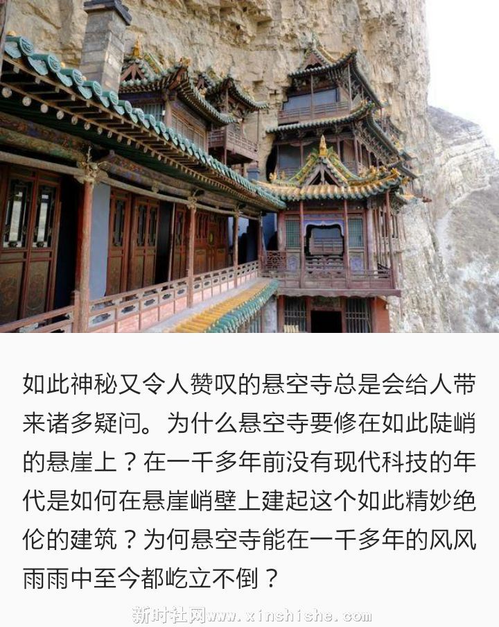 如此神秘又令人赞叹的悬空寺总是会给人带来诸多疑问。为什么悬空寺要修在如此陡峭的悬崖上?在一千多年前没有现代科技的年代是如何在悬崖峭壁上建起这个如此精妙绝伦的建筑?为何悬空寺能在一千多年的风风雨雨中至今都屹立不倒?