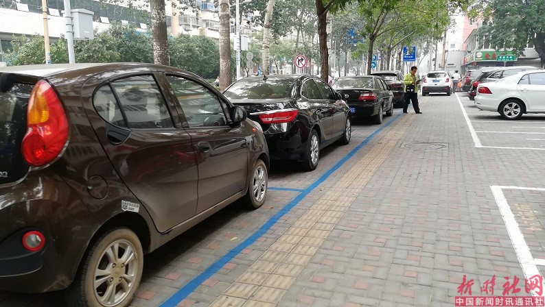 蓝色停车位,在机关办公、银行等门口设置了蓝色免费车位,方便办事车辆停放。