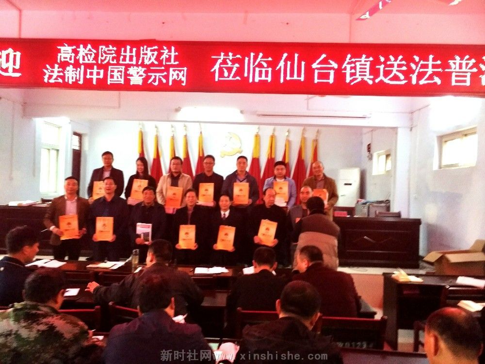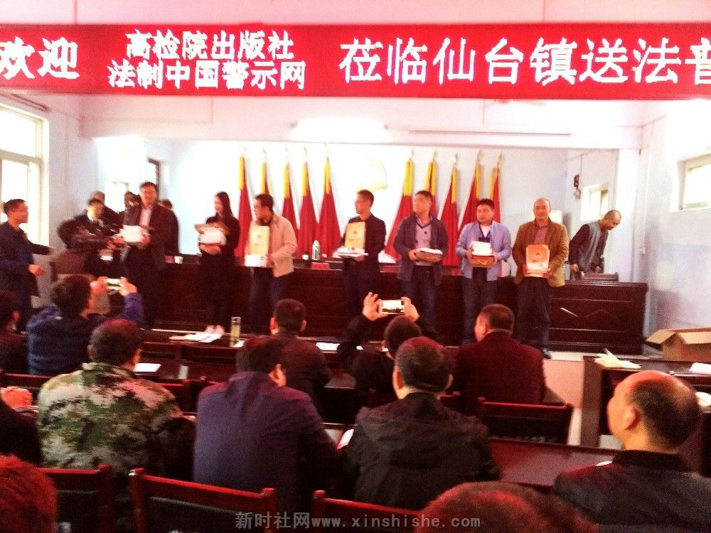 特约记者陈运发据 法治中国警示网河南讯【文图/康进昌 陈磊磊】秋雨连绵难阻送法脚步,秋风飒飒更显关爱温情!为喜迎党的十九大的胜利召开,更好地普及法治教育,警示服务各级干部,提醒党员干部自觉学法、守法、用法,进一步弘扬法治廉政文化、传播法治文明,加快法治化建没步伐,2017年10月17日,最高人民检察院中国检察出版社《法治中国警示教育网》主仼王玉贵、副主仼康进昌、编辑陈运发及法治中国警示网平顶山工作站负责人李新超、王建民等同志一行数人携带国家新闻出版广电总局"十二五"规划重点音像项目《法治与责仼》警示教育光碟及预防职务犯罪学刊等法教书籍,冒雨来到叶县仙台镇党委、政府,开展“送法、普法”捐赠活动,受到镇党委书记虎永福、镇长刘科伟,原叶县文联主席庞江华、叶县统战部副部长苏功业等领导热烈欢迎和机关党员、干部、群众的好评。中共叶县县委宣传部新闻中心、叶县报社、平顶山电视台等媒体跟踪此次捐赠活动。     此次送法普法下乡镇,计捐送法治警示教育光盘200(集)套,<<预防职务犯罪学刋>>、法治文学书藉等100本,镇机关全体党员干部暨村干部代表受教人员达六十多人。