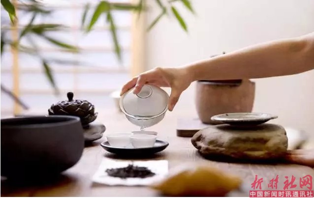 沏(泡):沏茶时手势动作要轻柔持重,倒开水时要把茶壶上下拉三次,高低斟,即“凤凰三点头”。目的是为了使茶叶在杯中能均匀地吸水,有利于茶叶在中显色、透香和吐味。此时还要仔细辨别沏茶的水声,仔细观察茶叶从浮到沉形态变化。
