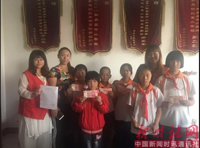 七所学校四十三名学生,按每个学生每学期五百元的标准,共计两万一千五百元,加上9月20号为八所学校六十三个往届贫困学生送去资助款三万一千五百元,总计五万三千元已全部送款到位。前进小学三三班的两位同学一起去送资助款,并给王永浩同学赠送了书包等。