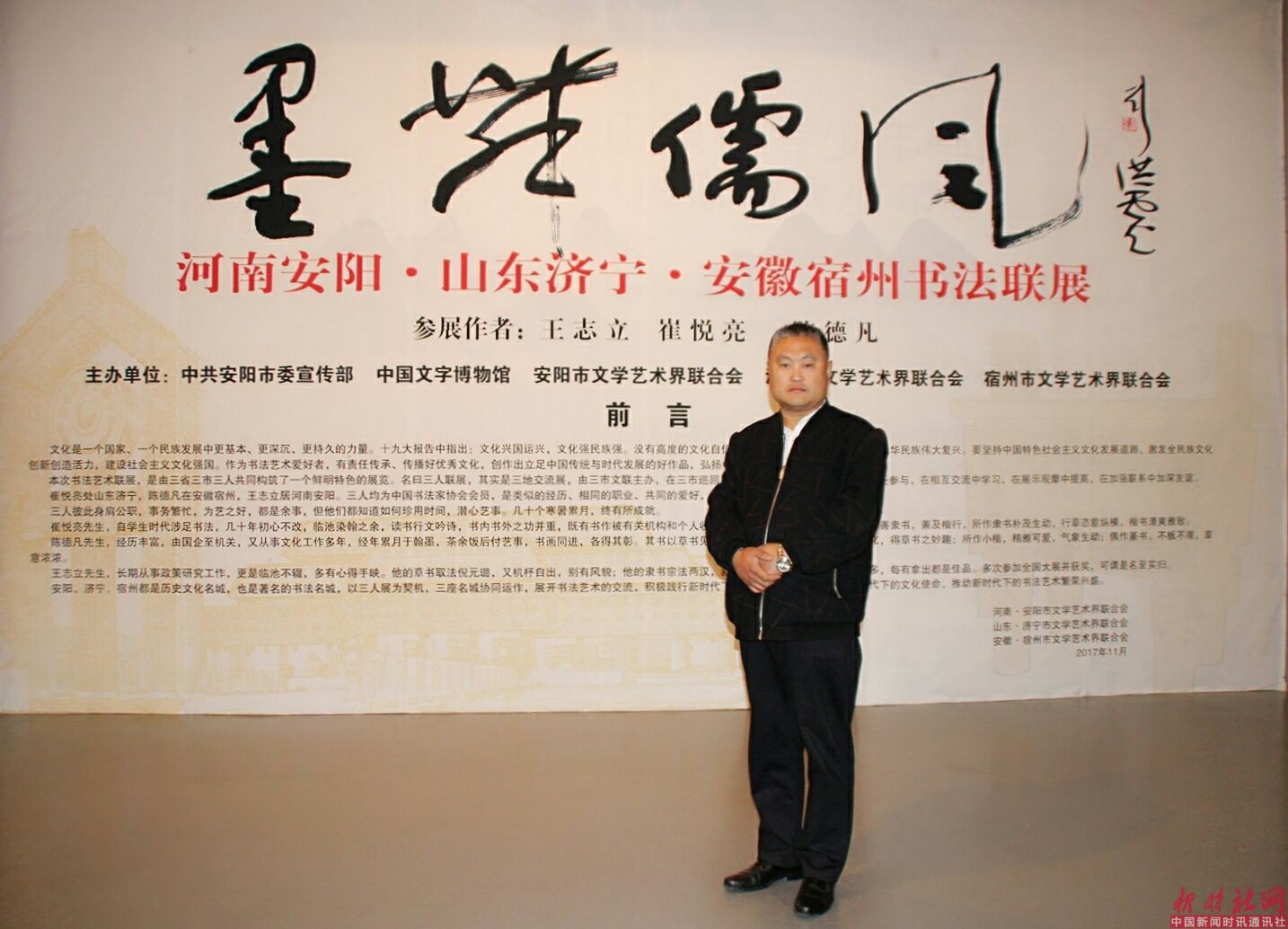 2017年11月7日,由中共安阳市委宣传部、中国文字博物馆、安阳市文学艺术界联合会、济宁市文学艺术界联合会、宿州市文学艺术界联合会主办的“墨舞儒风” 河南安阳、山东济宁、安徽宿州书法联展在中国文字博物馆举行。