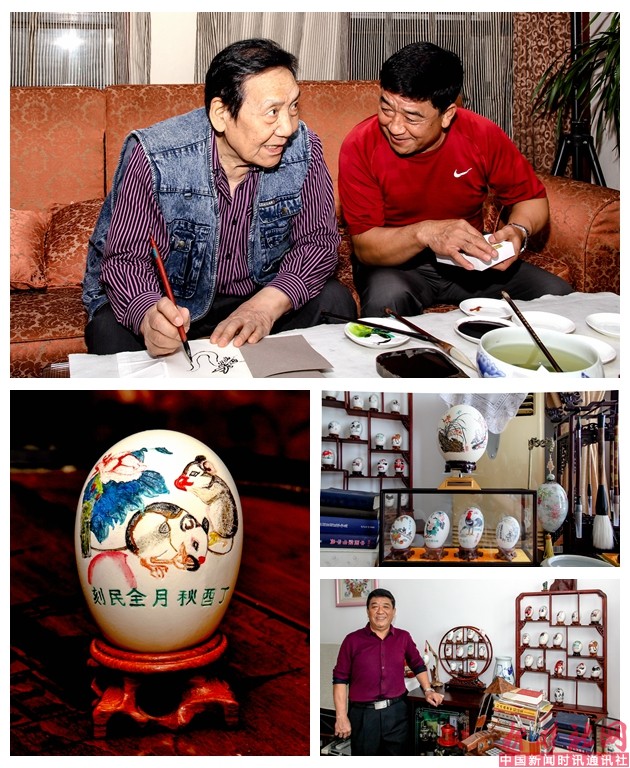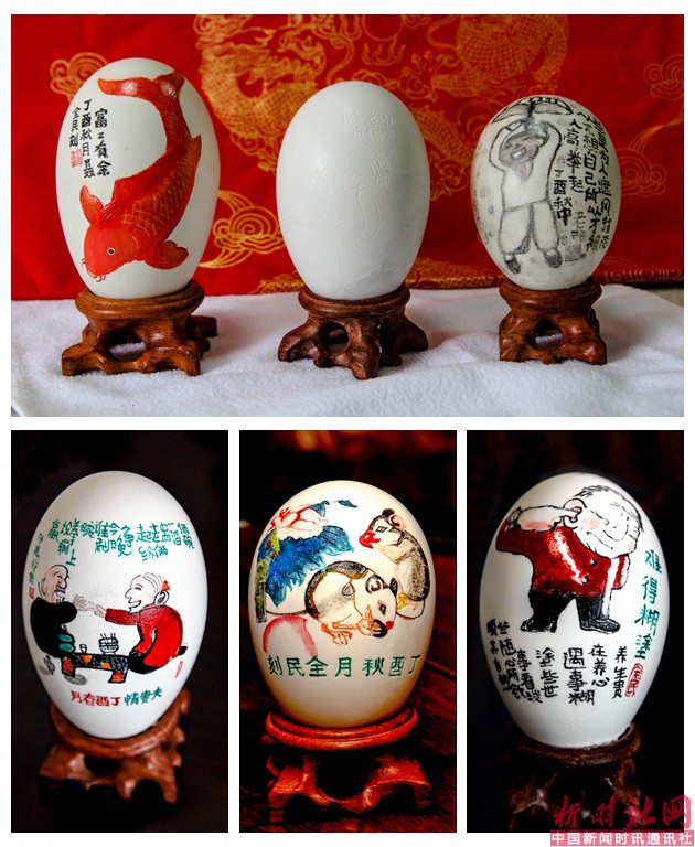 绝大多数人都知道,鸡蛋、鹅蛋、鸵鸟蛋具有很高的营养价值,有些人喜欢吃蛋白,有些人喜欢吃蛋黄。可有这么一个人,对蛋壳却情有独钟。他的鸡蛋、鹅蛋、鸵鸟蛋当然不是用来吃的,而是当做底版雕刻用的。一只小巧的蛋壳,通过画笔和刻刀绘制出精美的图案,就变成一个精致的艺术品。在薄脆的蛋壳上雕刻山水、花鸟、人物,将窗外的整个大千世界尽现于眼前的方寸之间,这对于来自京城胡同里的聂全民来说却是一种奇妙的享受。