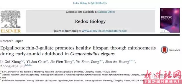 湖南农业大学茶学重点实验室,国家植物功能成分利用工程技术研究中心,湖南农业大学植物药功能成分利用协同创新中心的科研人员在2017年9月29日在《Redox Biology》期刊上发表的科研成果: