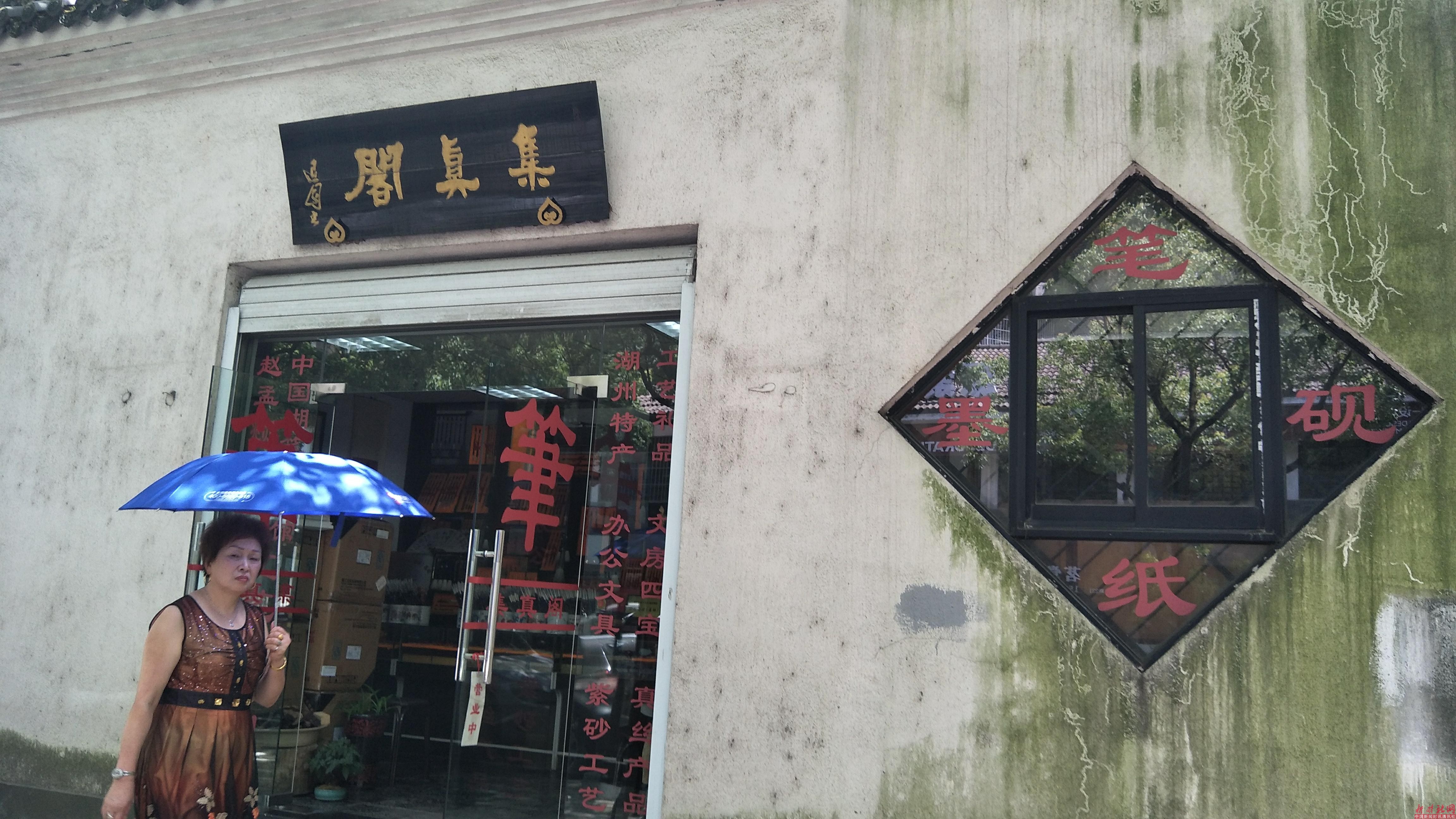 钱爱康说,“湖笔西施”这个名字,其实来自著名文学评论家费振钟老师。“他说,太湖是当年范蠡西施泛舟的地方,本身就很悠闲,坐在湖笔门店里,拥有万千湖笔,那种从容的状态,倒是可以做个湖笔西施。”于是,“湖笔西施”,就这么叫开了。![]()