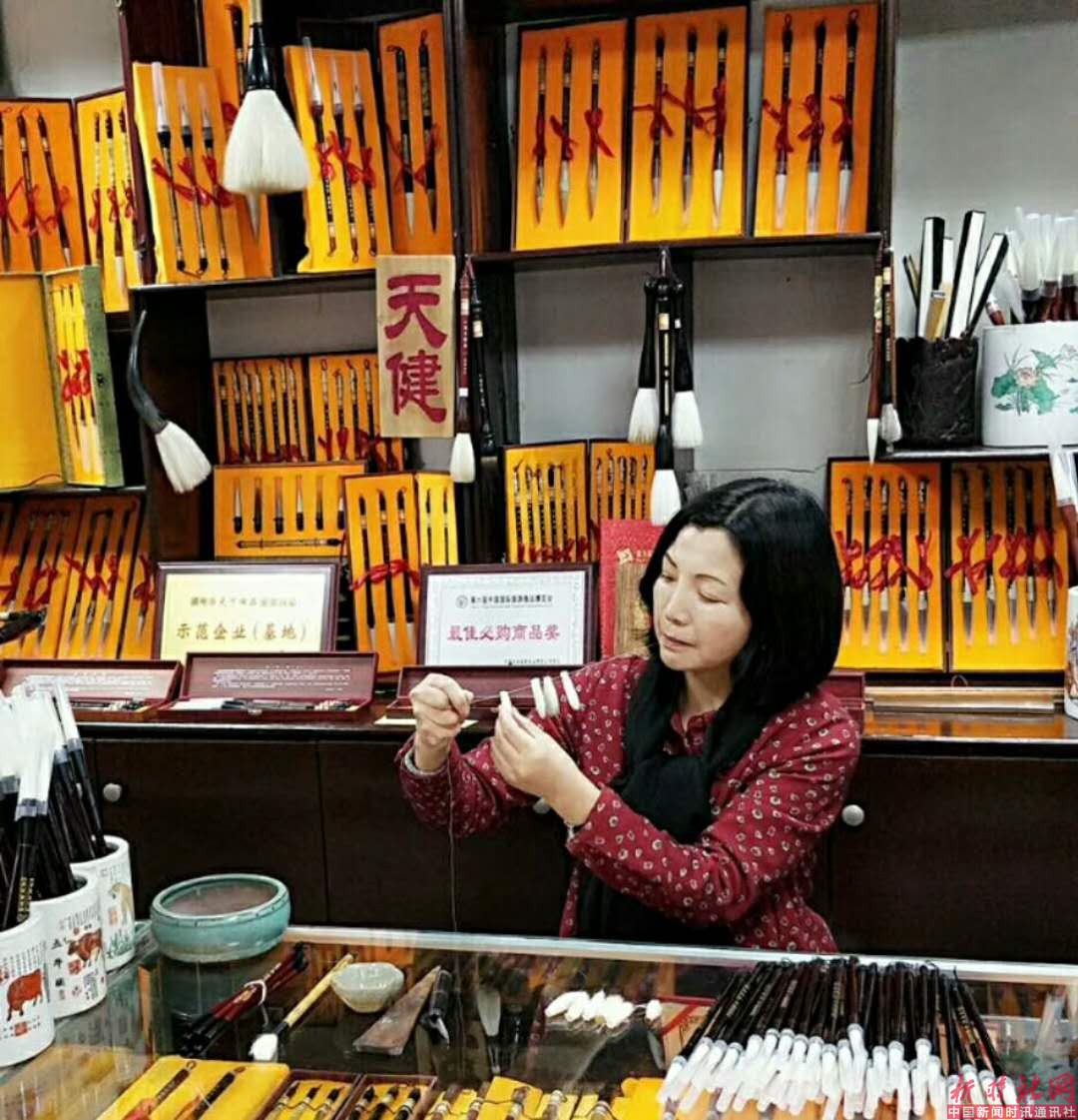 在继承传统的同时,钱爱康不忘研制创新,努力开发新品种。2012年新开发的牛耳毫提笔,经过书画家们反复试用不断改进后,在义乌文旅博会上一炮打响,取得了大订单,产品远销海外。力求完美,精益求精,钱爱康经历了一个湖笔人的艰辛,也经历着坚持带来的光荣——拥有一批长期固定客户,接做日本高端客户订单,很多国内文化名人大咖也都用她制作的湖笔,成为她产品的推广者。