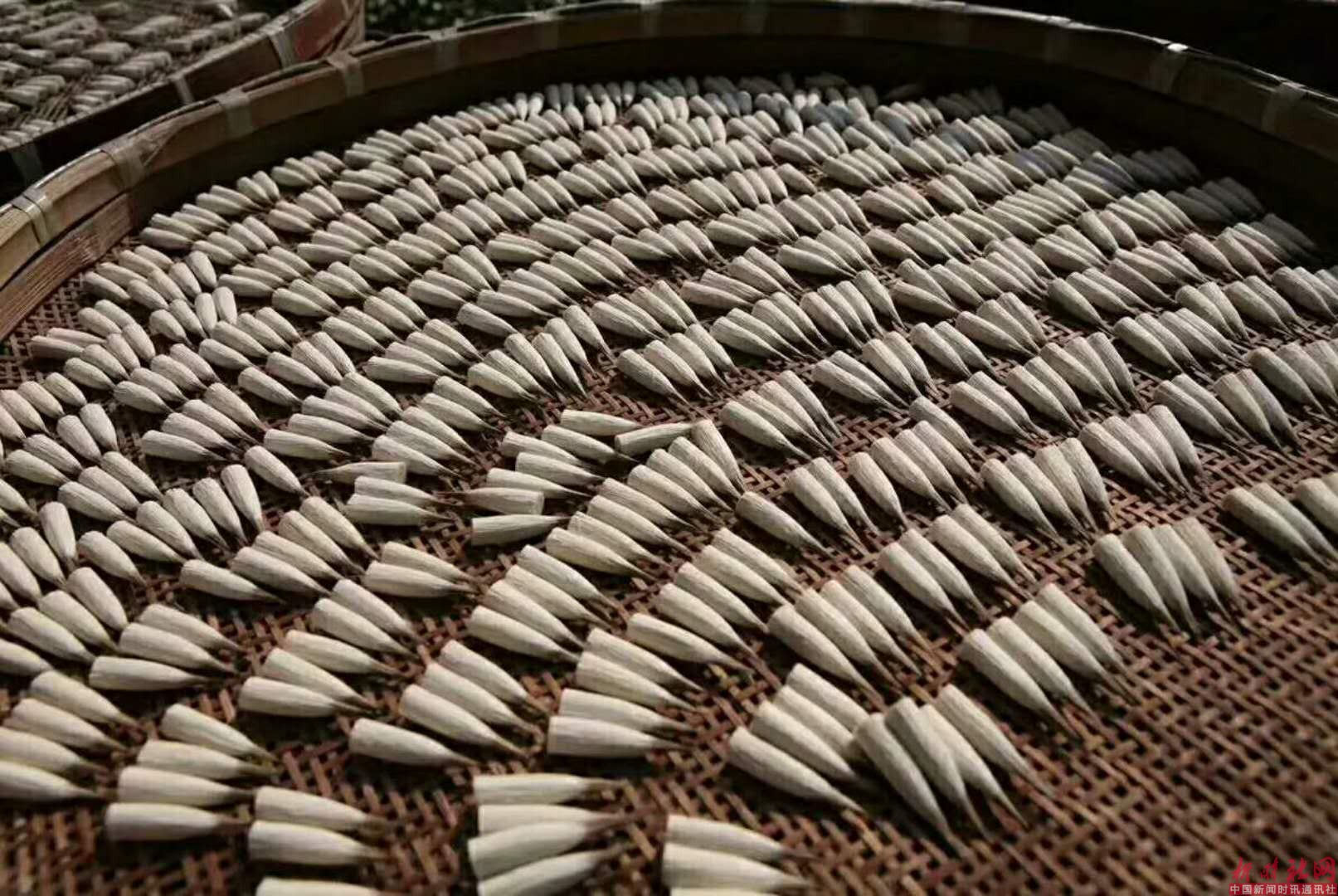 “将一个松散的笔头雏形拿线结扎好,捆紧后用松香和火烫结笔蒂,再把它装进涂好胶水的笔斗内固定。待胶干后,用修笔刀把笔毫有序逐层掰开修整,将不整齐没有毫锋的杂毛剔除掉,这就是择笔。择笔过程中360度都要检查,笔肚要圆润饱满,不能厚此薄彼,不然写字时笔毫方向会跑偏。接着用植物胶水收拢,干了之后就成了一支漂亮的笔头。”钱爱康仔细地为钱报记者解说,“这是制笔的核心,无论你前面的工序做得怎么好,选用的毫料多么顶尖,如果这一道没做好,这支笔可能就报废了,这也是我为什么最努力学这道工序的原因。”