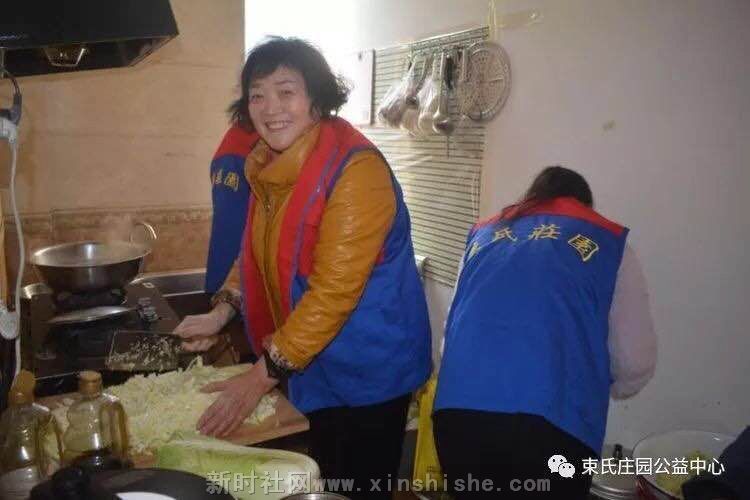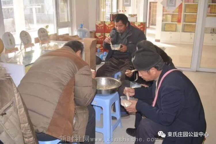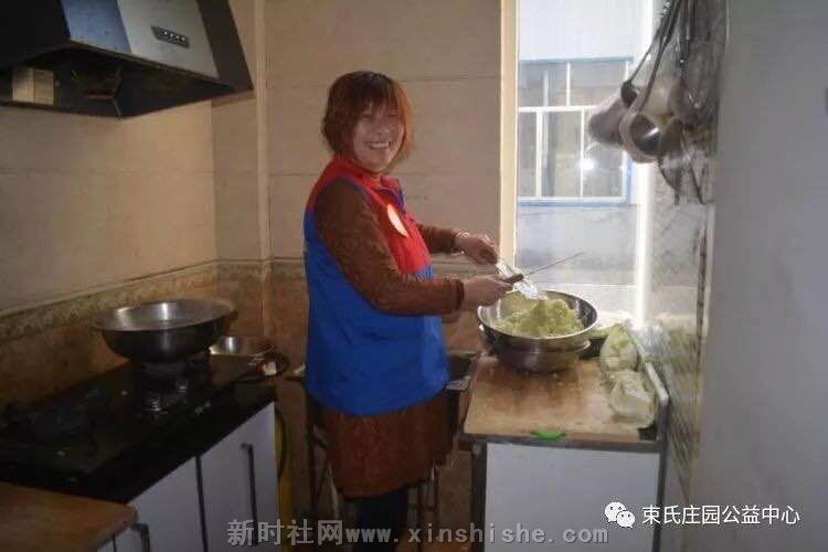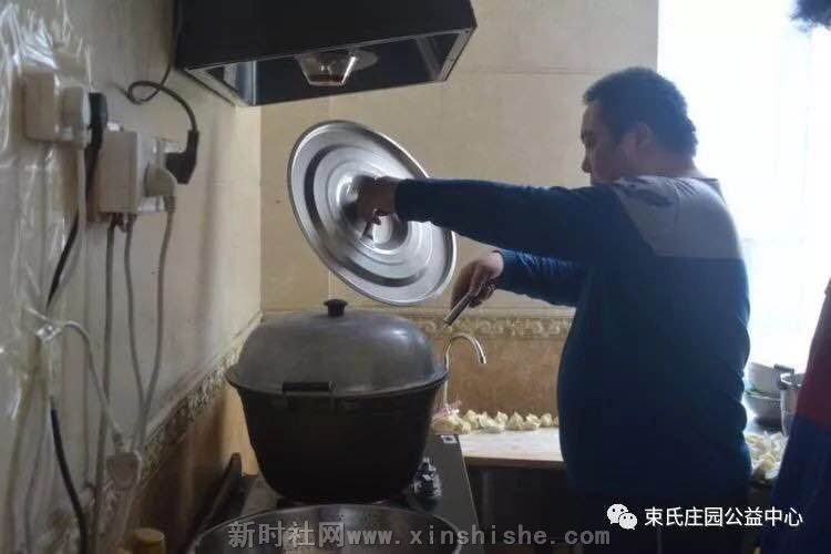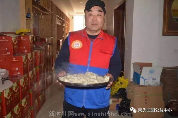 贾村分会会长陶哥正在把热腾腾的饺子端上桌,在公益中心,所有的人都亲力亲为,做着力所能及的事情