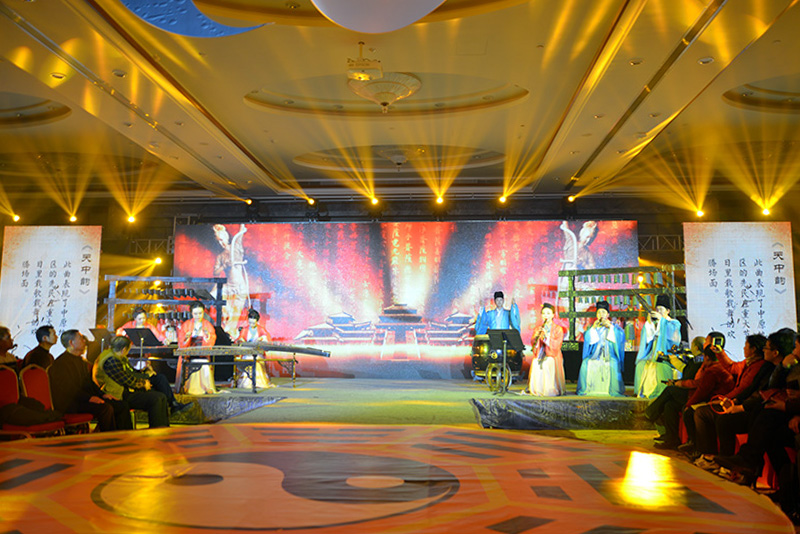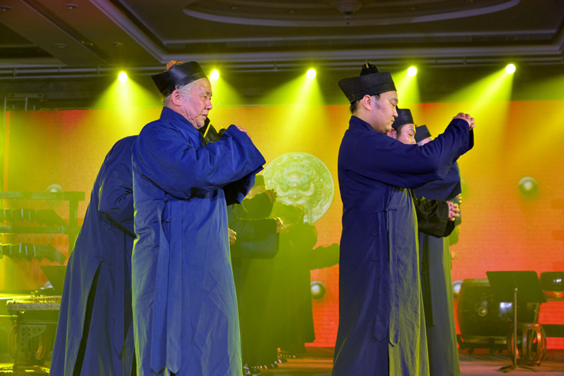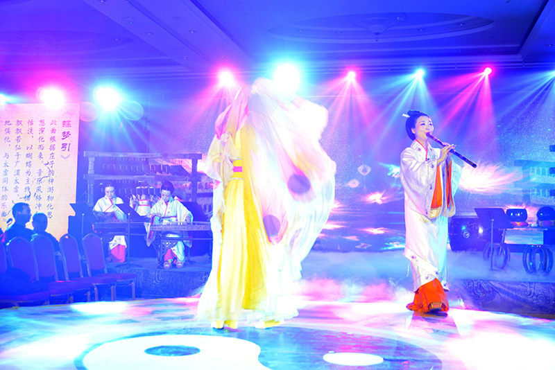 本次音乐赏听会演奏了《白鹤飞》《蝶梦引》《柳枝雨》等道教音乐,并表演了《七盘舞》《醉翁操》等古老舞操乐章,让观众感受到了中国古乐和舞蹈的魅力。