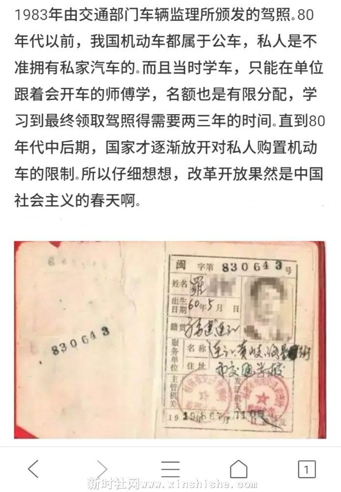 八十年代以前,我国机动车都属于公车,私人是不准拥有私家汽车的。而且当时学车,只能在单位跟着会开车的师傅学,名额也是有限分配,学习到最终领取驾照得需要两三年的时间。直到八十年代中后期,国家才逐渐放开对私人购置机动车的限制。所以仔细想想,改革开放果然是中国社会主义的春天啊。