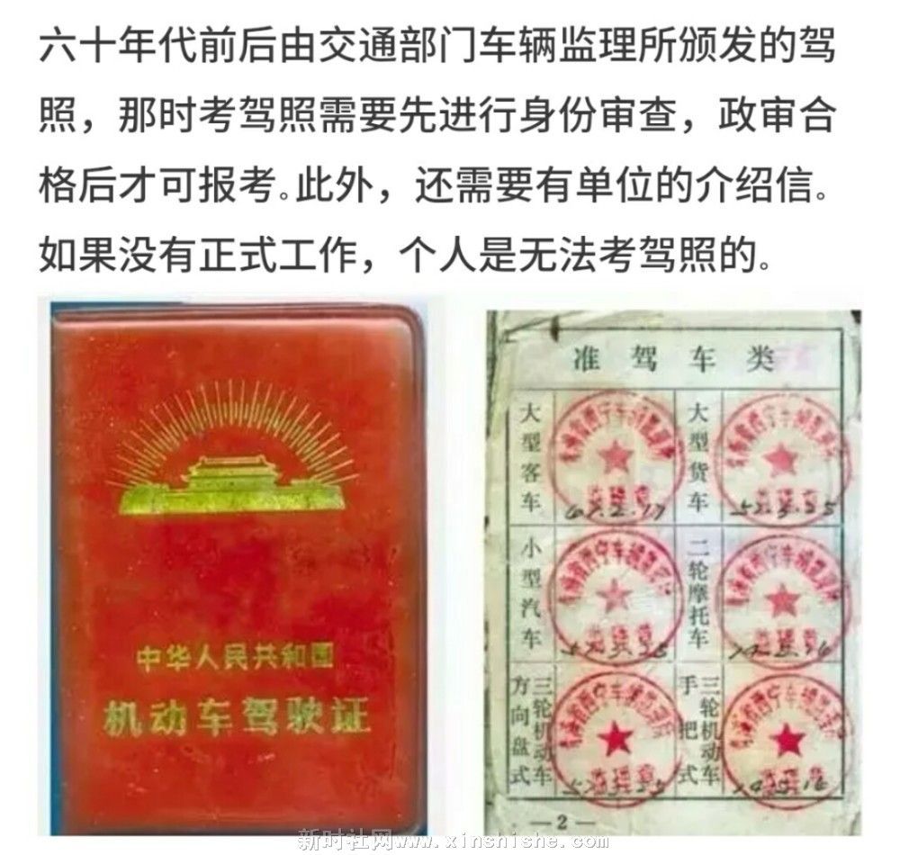 六十年代前后由交通部门车辆监理所颁发的驾照,那时考驾照需要先进行身份审查,政审合格后才可报考。此外,还需要有单位的介绍信。如果没有正式工作,个人是无法考驾照的。