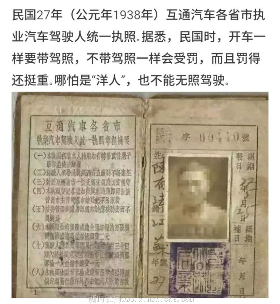 民国27年(公元年1938年)互通汽车各省市执业汽车驾驶人统一执照。据悉,民国时,开车一样要带驾照,不带驾照一样会受罚,而且罚得还挺重。哪怕是“洋人”,也不能无照驾驶。中华民国初期辽宁省会公安局颁发的汽车司机许可证,长衫的模糊照片依稀能领略当时民国遗风!