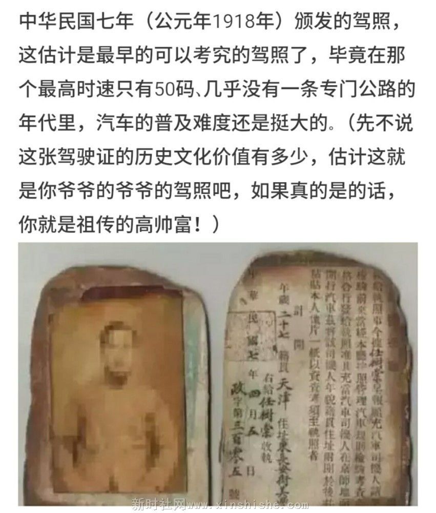 中华民国七年(公元年1918年)颁发的驾照,这估计是最早的可以考究的驾照了,毕竟在那个最高时速只有50码、几乎没有一条专门公路的年代里,汽车的普及难度还是挺大的。