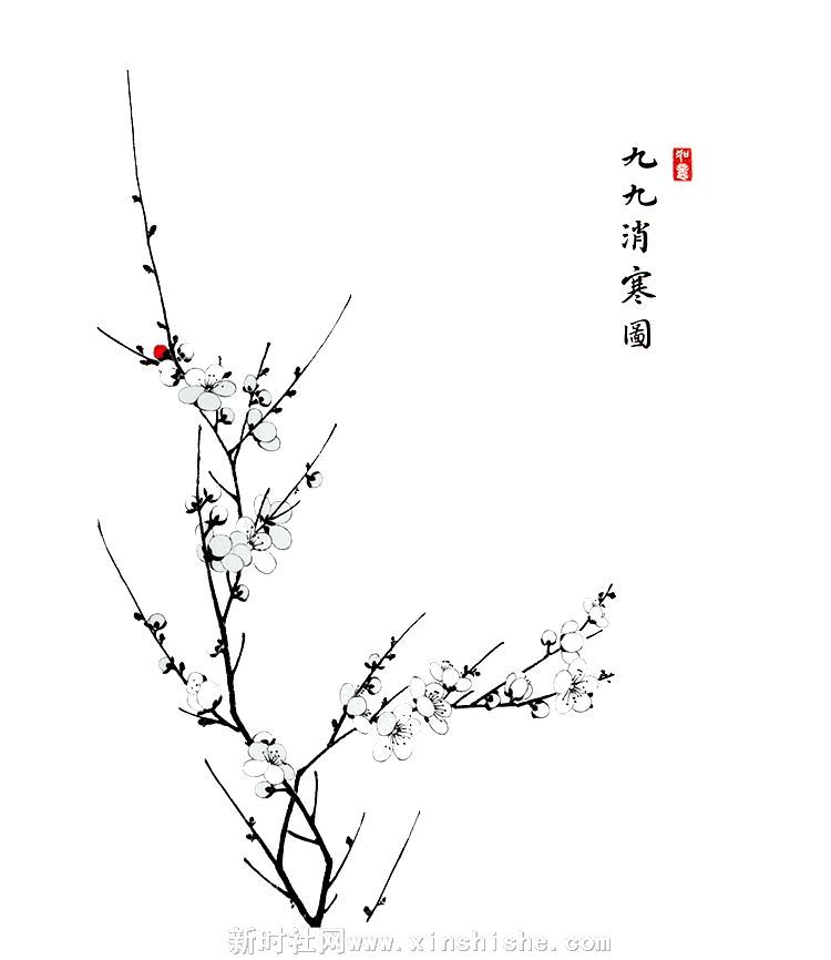 染梅与填字是《九九消寒图》的两种流行方式。染梅属于“画九”,画的即是《梅花消寒图》。明代刘侗、于奕正的《帝京景物略·春场》记载:“日冬至,画素梅一枝,为瓣八十有一,日染一瓣,瓣尽而九九出,则春深矣,曰九九消寒图。”画九,中国人还是选用了最为风雅也最合时令的梅花,凌寒傲雪得梅花,与兰竹菊并称四君子,是君子品德的象征。染梅的颜色,多选用朱红色的,“素梅一瓣染成朱,画出九九消寒图”。也有用墨笔染的,“但看图中梅黑黑,便是门外草青青。”一枝素色的梅花,涂写者一天染上一笔,九九八十一天之后,红梅满树之时,窗外已是春风送暖,是多么美妙的事情啊。