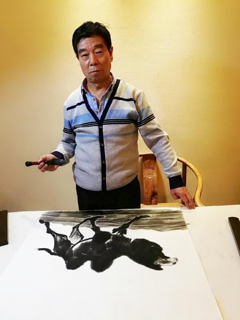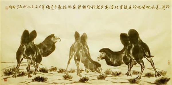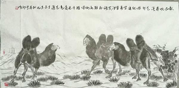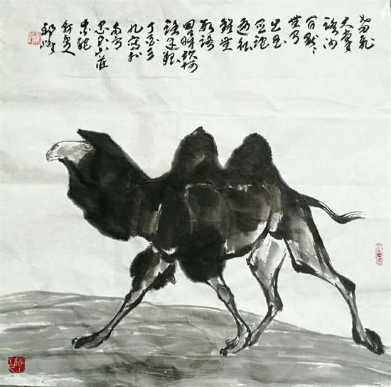 创作期间,祁峰先生以画中有诗、诗中有画的神来之笔,把彰显“天下第一驼”的精湛画艺跃然于纸上,凸显了妙手丹青浑自然、舍去一点终不成的当代名家创作之风,创作之余,还应邀为友人挥毫题写了书法作品。