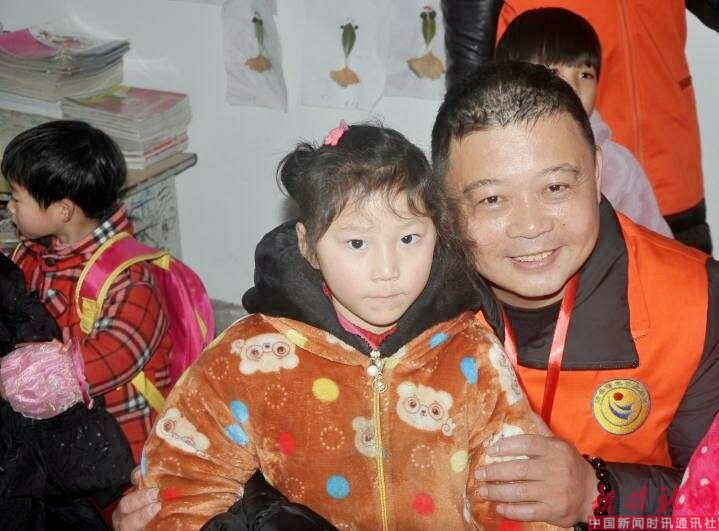 当自愿者把一件件温暖的羽绒服穿在孩子们身上,略带羞涩的小脸露出久违的笑容.看着崭新的书包和文具盒,一个个小手轻轻的抚摸着.生怕不小心掉在地上.