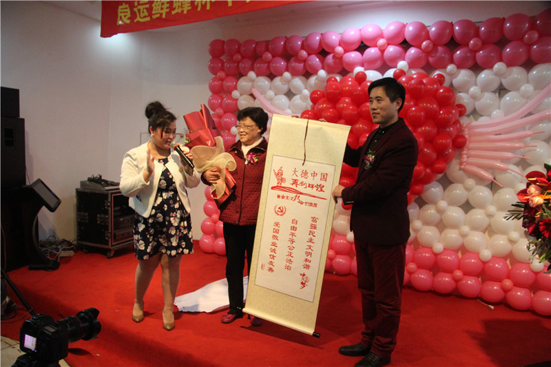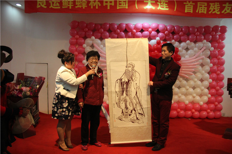 2018年1月13日16时30分,良运鲜蜂杯中国(大连)首届残友厨艺交流赛颁奖晚会暨中国(大连)首届残友春晚在大连锦辉商城高新园区店一楼大堂隆重开幕。兰亭社区民俗文化艺术协会作为此次残友厨艺交流赛的支持单位,应邀出席了颁奖晚会。出席本次公益爱心活动的会员有:张金华 会长、何涛 副会长、厚荣有 副会长、柔若冰、张桂珍、鲍治康、孟秀华、牛志刚、王淑清、何伟。兰亭社区民俗文化艺术协会自始至终的关心支持着残友厨艺交流赛,在交流赛新闻发布会上,何涛 副会长亲笔题写《美食文化公益行》牌匾赠送给大赛组委会,张金华 会长以及协会会员、艺术家们一同捐赠书画艺术作品现场义卖,所得善款全部用于本次公益残友厨艺交流赛。中国(大连)首届残友厨艺交流赛组委会鉴于兰亭社区民俗文化艺术协会对此次残友厨艺交流赛以及公益事业的大力支持和无私奉献,特授予兰亭社区民俗文化艺术协会为“公益爱心协会”荣誉称号,并颁发奖杯和证书,特此表示感谢。