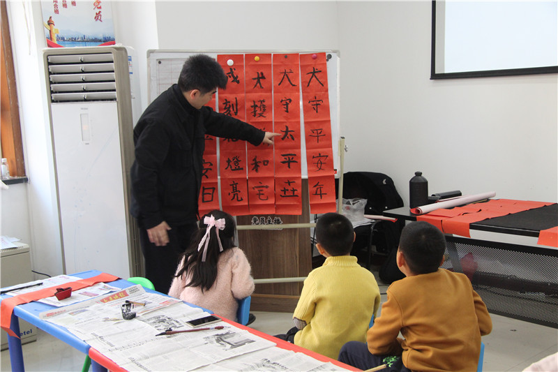 戊戌狗年春节临近,年味越来越浓,为了培育和践行社会主义核心价值观,继承和弘扬中华民族优秀传统文化,促进辖区青少年思想道德建设、丰富文化内涵,更好地展示青少年儿童积极向上、追求美好生活的时代精神,引导中小学生过一个有意义的寒假,让孩子们体验中国博大精深的优秀传统文化,感受2018新春佳节的韵味,2018年1月20日9时,「马栏街道关工委」在「马栏街道枢纽党群服务中心」开展2018“迎新春写对联”专题活动,让孩子们用春联书写那浓浓的年味。