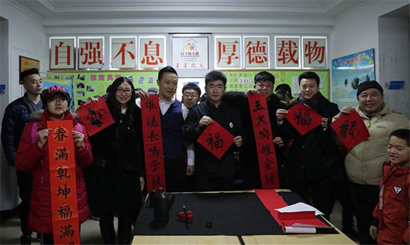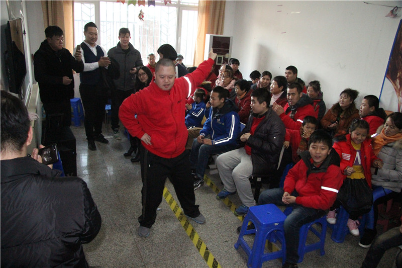 活动中,首先星星之火的孩子们和家长共同表演校舞《同一个世界》。大龄孤独症青年王永贞 同学现场展示超凡记忆才能,与爱心人士们做互动。他今年36岁,是大龄高功能自闭症患者,他是自闭症人群中少有“阿兹伯格”,有超凡的记忆力、会速算、活地图、活日历,自学的英语口语,能熟练地与外国友人口语交流。之前的永贞,在跟人沟通交流时,害羞,语言生硬,不会变通。自从走进“星星之火”,通过社会融合活动的锻炼,与爱心人士之间的互动,越来越流畅自如,情感能力增强,有了小心眼,也学会了关心照顾比他小的孤独症的弟弟妹妹们。自闭症女孩 李其 同学为大家歌唱《隐形的翅膀》,她今年17岁,现在就读于商业学校,平时喜欢画画,唱歌,弹钢琴,看书……因为自闭症的原因,在与人沟通和交往方面有障碍。自闭症孩子 许浩南 同学为大家献上歌曲《凡人歌》,他今年21周岁,喜欢听音乐、唱歌、玩游戏、特别喜欢关于《三国演义》的视频、书籍和游戏。因为本身的疾病导致社会沟通、交往能力存在很大的问题。自闭症孩子 闫旭昊 同学现场即兴为大家表演了舞蹈《小苹果》,活跃了现场的气氛。车友会的爱心人士们也展示了歌曲等节目,现场和自闭症孩子们互动。「中国文化魂书画研究院」副院长 何涛 先生以及「尚美教育学校」的老师们,为大家现场书写红彤彤的春联和“福”字,祝愿大家过一个年味十足的春节。
