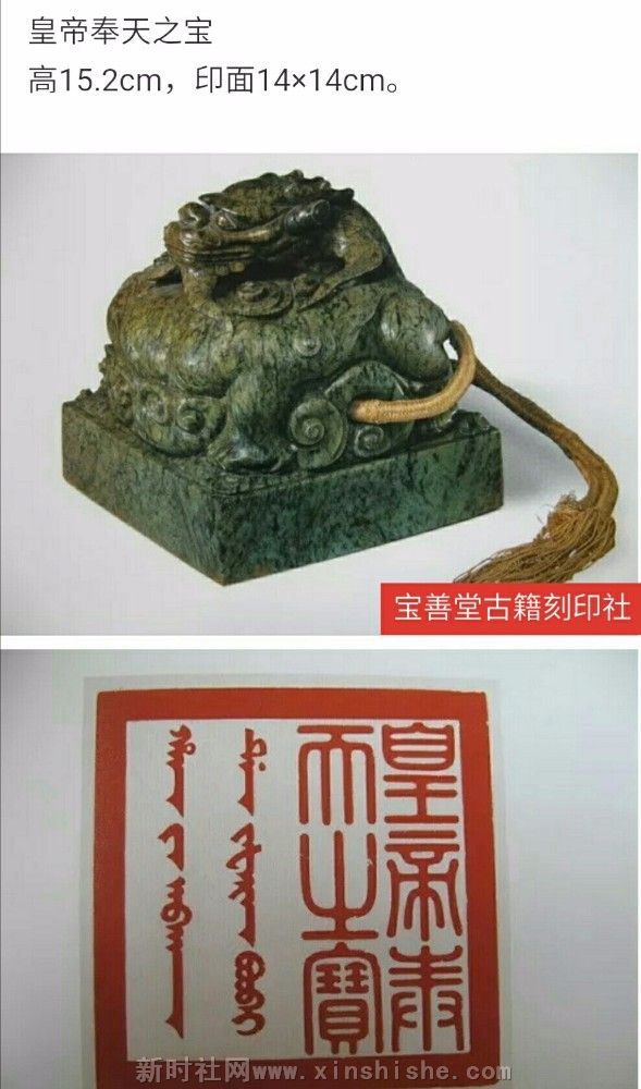 皇帝奉天之宝,高15.2cm,印面14×14cm。