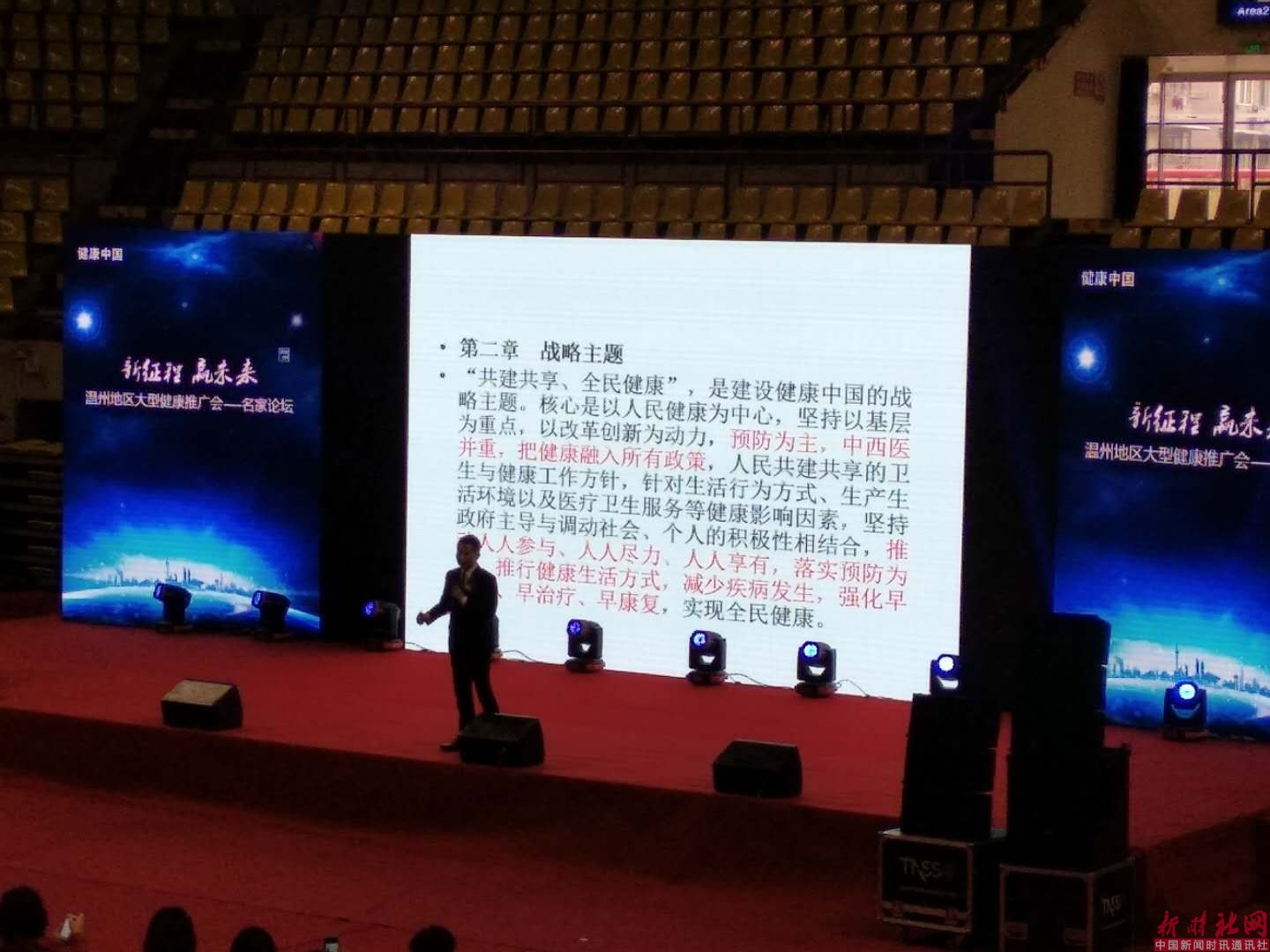 2018年4月27日,在温州市体育馆,举行温州地区大型健康推广会——名家论坛,为2030健康计划做好夯实基础,有心里健康专家刘冬威、浙江医科大学教授黄文波、国家卫计委ERAS专家陈作兵等名家深入浅出的剖析了疾病的起源与控制,得到了广大市民的强烈反响和认同。