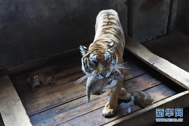黑龙江海林:一雌性东北虎再生五胞胎宝宝