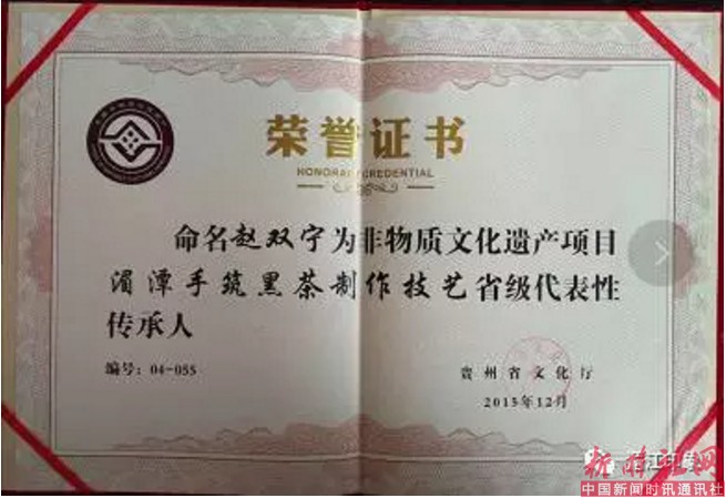 2015年,赵双宁获得了贵州省“湄潭手筑黑茶” 省级非物质文化遗产代表性传承人;2017年荣获中国黑茶类制茶大师候选人。