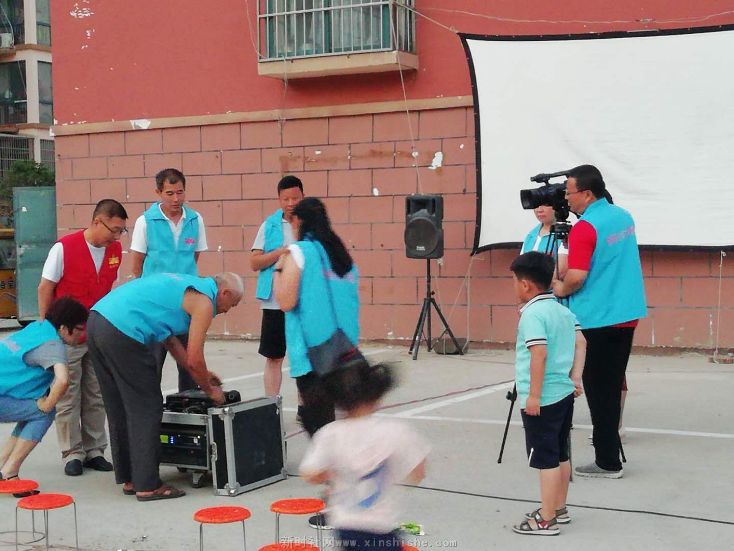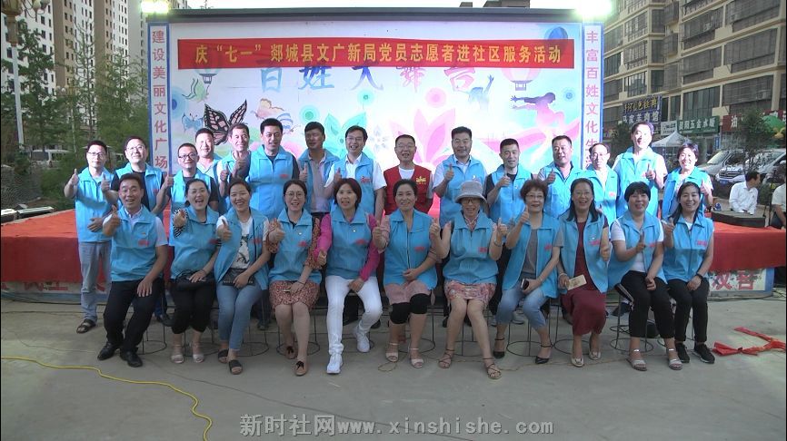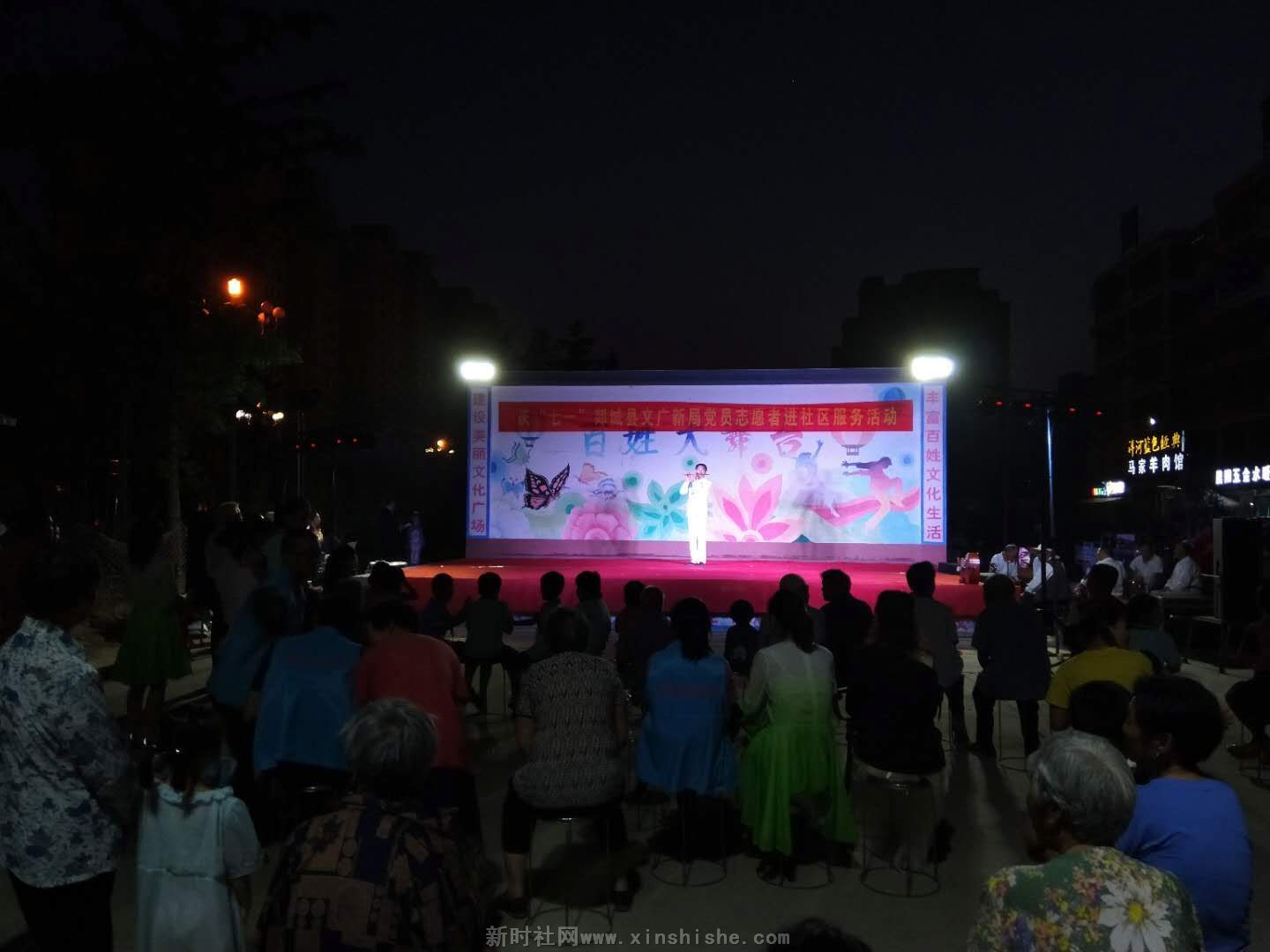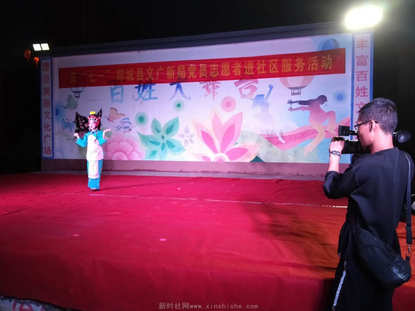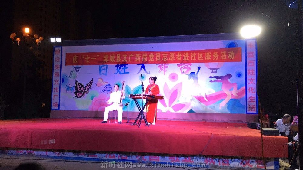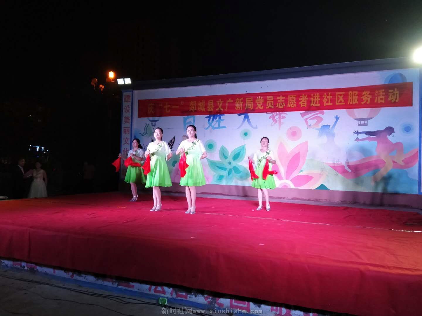6月22日晚,县文广新局组织党员志愿者们、沂蒙红色文艺轻骑兵郯城小分队、公益电影放映队与东城艺新艺术团,在东城社区开展,庆“七一”郯城县文广新局党员志愿者进社区服务活动。