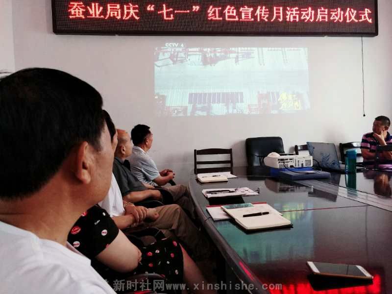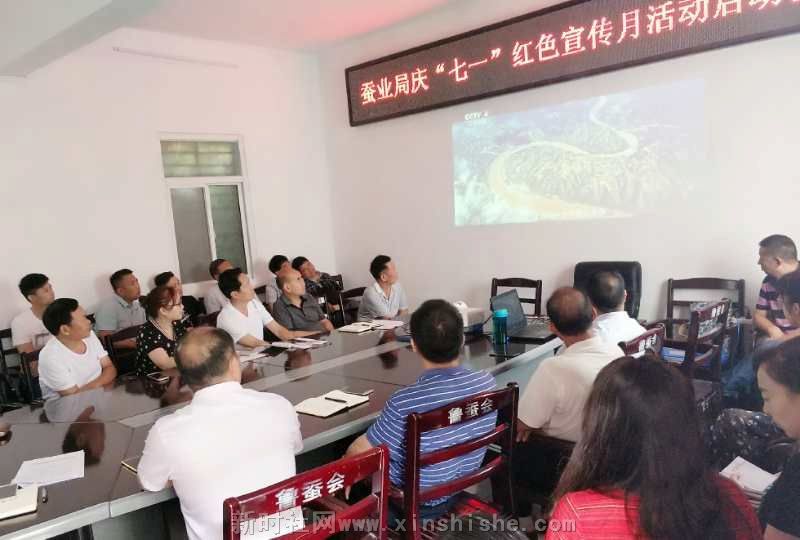 【中国新闻时讯通讯社记者马进伟  陈运发】报道:七月二日上午,鲁山县蚕业局举行庆“七一”红色宣传月活动启动仪式。启动仪式在《厉害了我的国》宣传片的播放中拉开了序幕,全体党员重温入党誓词,并积极的展开了批评和自我批评。局长吴付申安排部署了红色宣传月活动内容,要求每一位党员同志要利用我党九十七岁生日的大好时机,积极走访贫困村,贫困户,在脱贫攻坚这场没有硝烟的战争中发挥自身优势,产业带动,振兴蚕业,科技扶贫,早日实现我们的“蚕业梦”。离退休老党员王留运同志说:“共产党员”这个光荣称号是每一个党员同志的自豪。一位哲人曾说过:“人的一生要递交两份答卷。一份交给社会,让大家认为你不错;另一份交给自己,当你回首往事时,是否感到人生无悔”。而作为一名共产党员,我们要向自己的人生递交三份答卷:一份交给社会,事事带头作榜样;另一份留给自己,当反思往事时,让自己感到骄傲和自豪;这第三份吗,要交给党,看党旗上有没有闪着您的光彩。